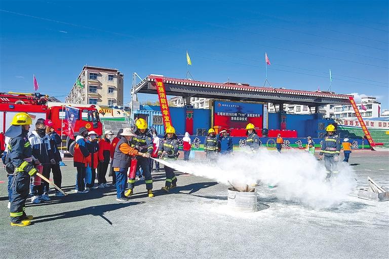 11月5日,2023年日喀則市“119”消防宣傳月活動啟動儀式在日喀則市第三高級中學舉行。日喀則市消防安全委員會成員單位及師生代表共1500余人參加活動。活動中,消防技能挑戰(zhàn)、消防科普互動、消防裝備展覽、改革轉(zhuǎn)隸五周年成果展、消防技能展示等,吸引了大批師生近距離體驗消防、認識消防,進一步筑牢校園消防安全“防火墻”。