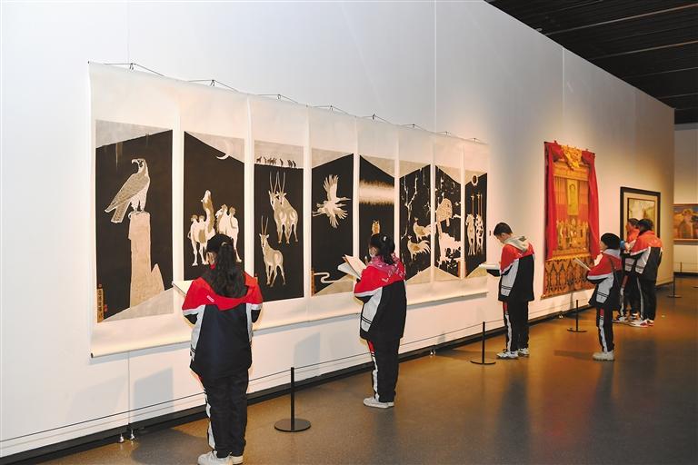 圖為11月16日,拉薩阿里河北完全中學(xué)繪畫(huà)社團(tuán)的孩子們走進(jìn)西藏美術(shù)館參觀臨摹藝術(shù)畫(huà)作。記者 次仁平措 丹增群培 攝