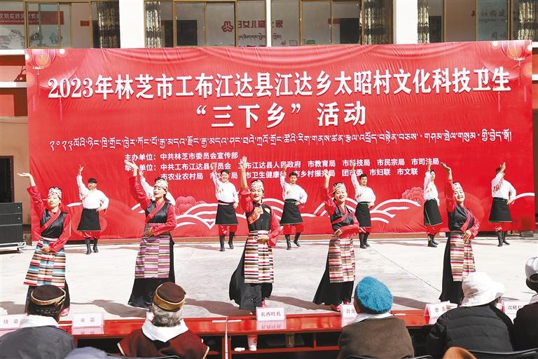 近日,由林芝市委宣傳部牽頭在工布江達縣江達鄉(xiāng)太昭村聯(lián)合舉辦林芝市文化科技衛(wèi)生“三下鄉(xiāng)”活動。林芝市、工布江達縣兩級文藝工作者為現(xiàn)場群眾送上的《續(xù)寫盛世》《栢榭》等精彩節(jié)目和哈呼曲藝社帶來的語言類節(jié)目《學(xué)習(xí)國家通用語言文字》,深受群眾喜愛,節(jié)目中還穿插黨的二十大精神等相關(guān)知識問答環(huán)節(jié),在場群眾積極參與,踴躍回答,現(xiàn)場氣氛十分活躍。