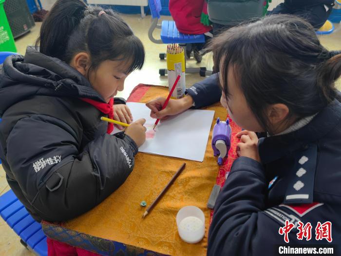 圖為小朋友們展示自己的畫(huà)畫(huà)作品。扎西根培 攝