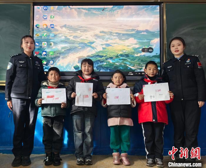 圖為玉麥邊境派出所民警與小朋友一起畫(huà)畫(huà)。扎西根培 攝