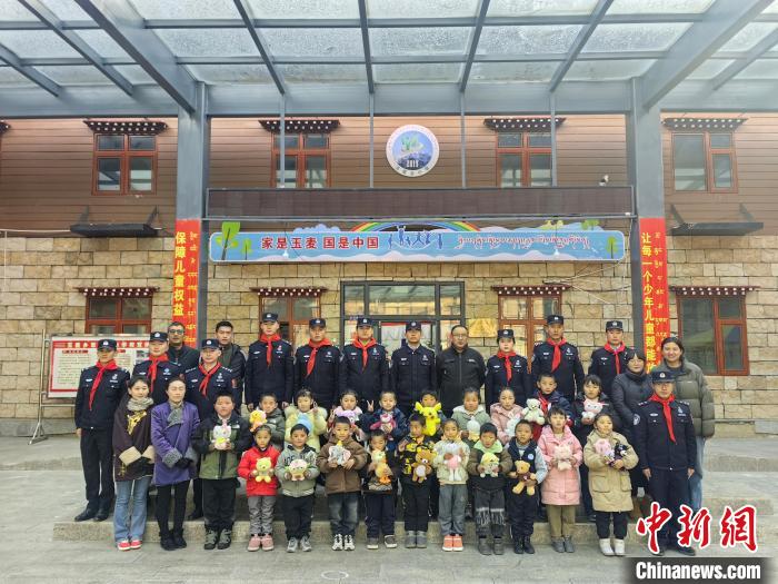 圖為玉麥邊境派出所民警為小朋友們發(fā)放“愛(ài)心禮包”。扎西根培 攝