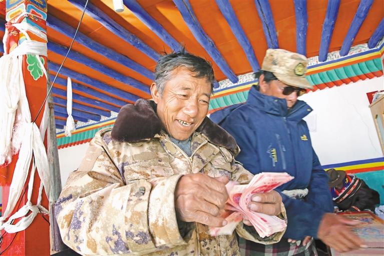 近年來,日土縣多瑪鄉(xiāng)黨委、政府立足“一羊一樹一道一湖”資源,不斷推動產業(yè)結構和運營模式改革,提升村集體經濟產業(yè)發(fā)展活力,有效增加農牧民群眾收入。圖為多瑪鄉(xiāng)合作社社員喜領分紅。通訊員 嘎瑪次仁 攝