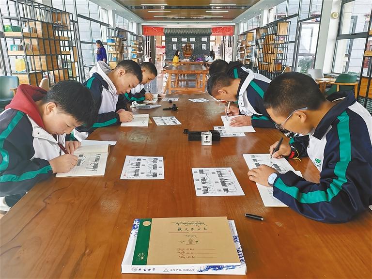 圖為拉薩北京實(shí)驗(yàn)中學(xué)舉行藏文書法比賽。