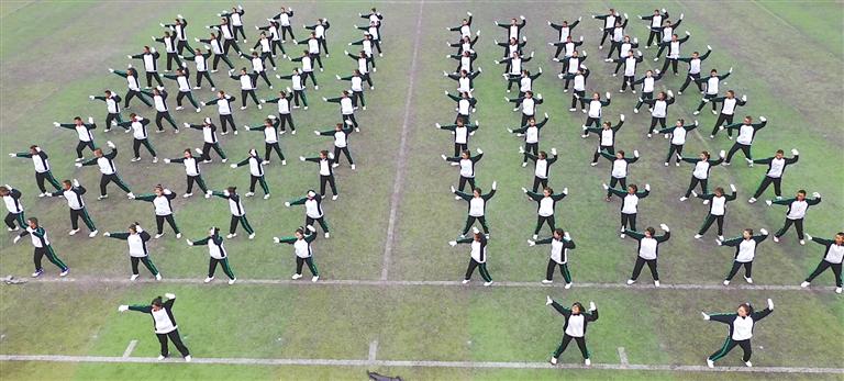 圖為學(xué)生們展演鍋莊舞課間操。(圖片均由拉薩北京實(shí)驗(yàn)中學(xué)校園電視臺提供)