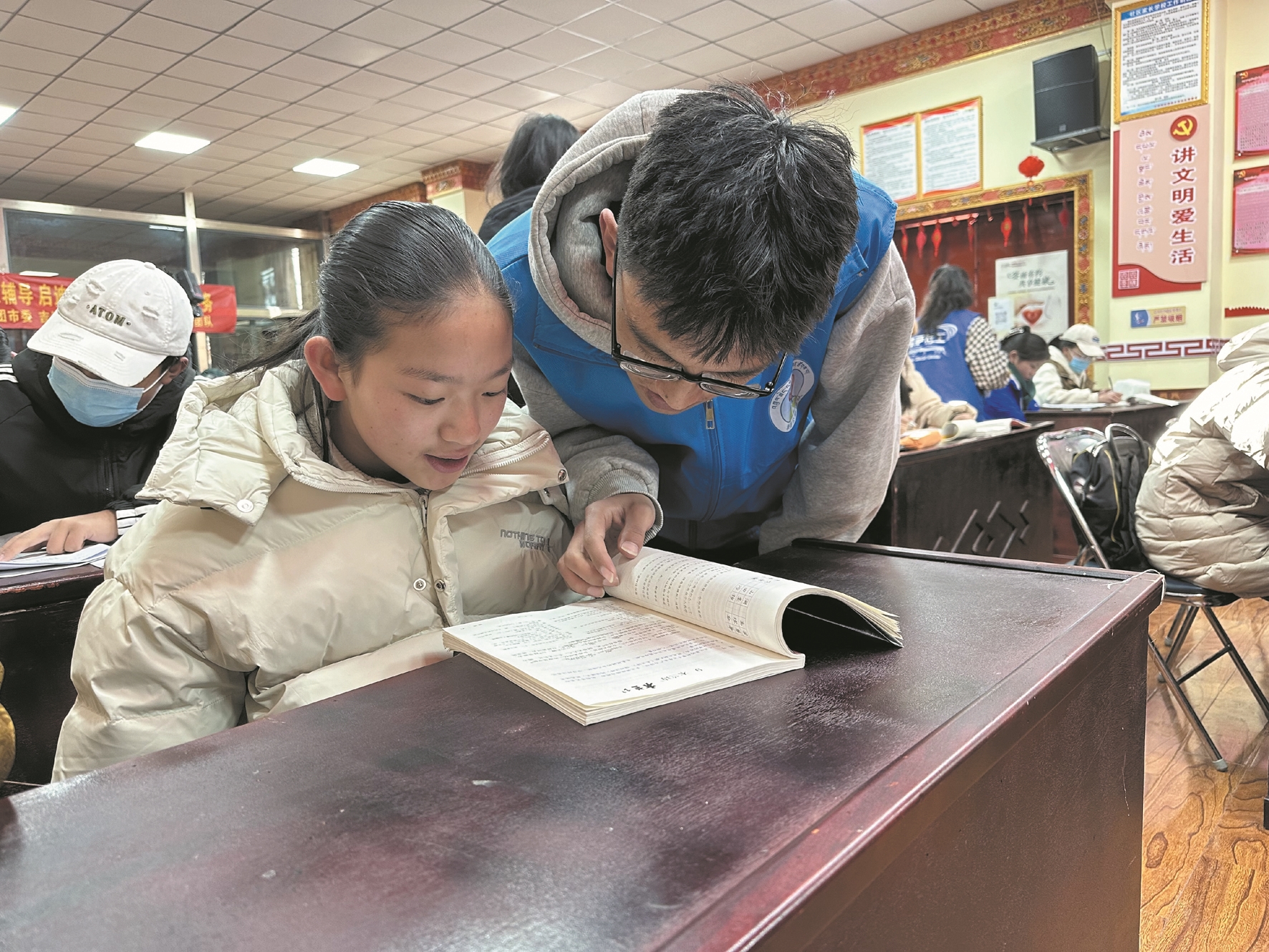 寒假期間,不少家長(zhǎng)因?yàn)闆](méi)辦法輔導(dǎo)孩子的日常學(xué)習(xí)而感到苦惱。前不久,吉崩崗街道聯(lián)合市團(tuán)委、摯善公益團(tuán)隊(duì)在熱木其社區(qū)居委會(huì)里設(shè)立了一個(gè)臨時(shí)“教室”,為轄區(qū)孩子們提供為期一個(gè)月的課業(yè)輔導(dǎo)志愿服務(wù)?,F(xiàn)場(chǎng),返鄉(xiāng)大學(xué)生志愿者們變身為一名名“小老師”,耐心幫助孩子們解決學(xué)習(xí)難題,輔導(dǎo)的課業(yè)涵蓋了小學(xué)、初中的所有科目。除了教作業(yè),志愿者還組織孩子們開展演講比賽、書法比賽等活動(dòng),充實(shí)了孩子們的假期生活。
