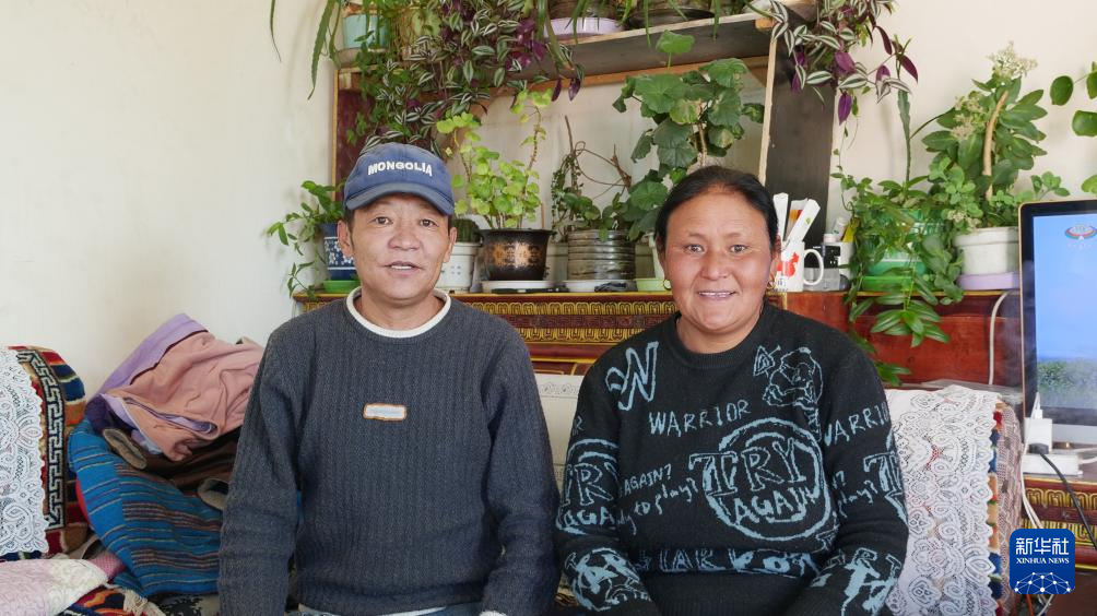 玉珍瑪和普布頓珠夫婦在普蘭縣客運(yùn)站門衛(wèi)室里合影(1月7日攝)。新華社記者 陳澤鵬 攝