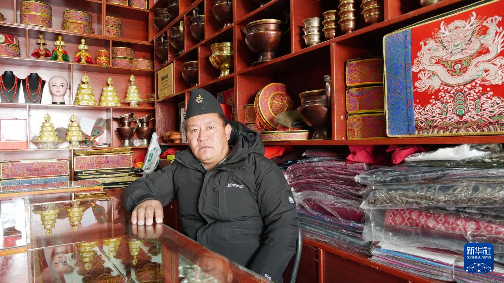 在普蘭縣唐嘎邊貿(mào)市場(chǎng)里經(jīng)商的尼泊爾籍商人米瑪(1月7日攝)。新華社記者 陳尚才 攝