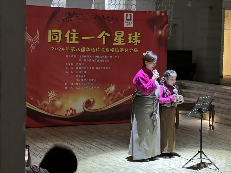 中國(guó)西藏網(wǎng)訊 2月24日元宵節(jié)之夜,以“同住一個(gè)星球”為主題的“2024年第八屆華語(yǔ)詩(shī)歌春晚拉薩分會(huì)場(chǎng)詩(shī)歌朗誦會(huì)”在拉薩介觀藝術(shù)中心舉行。此次活動(dòng)由西藏作家協(xié)會(huì)主辦、雪域萱歌、格桑花開、拉薩介觀藝術(shù)中心協(xié)辦。