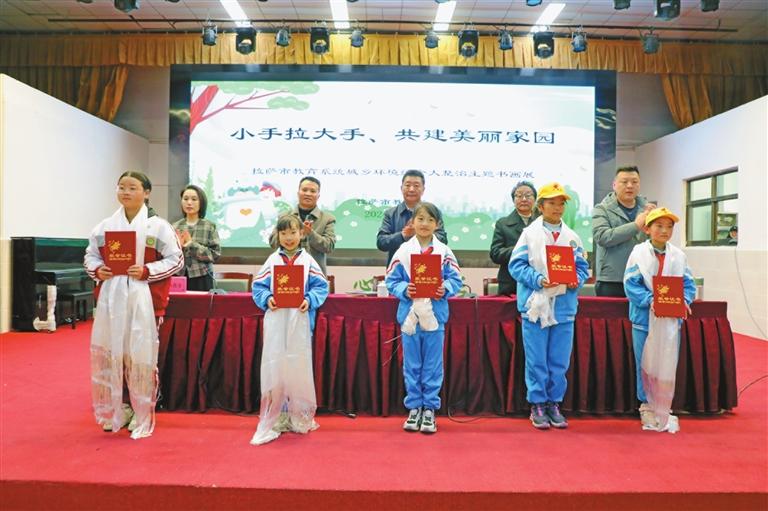 近日,拉薩市教育系統(tǒng)舉辦“小手拉大手、共建美麗家園”主題書畫展。全市各級各類學校積極參與書畫作品征集,展示拉薩市青少年對美麗家園的熱愛以及參與環(huán)境整治的堅定決心。