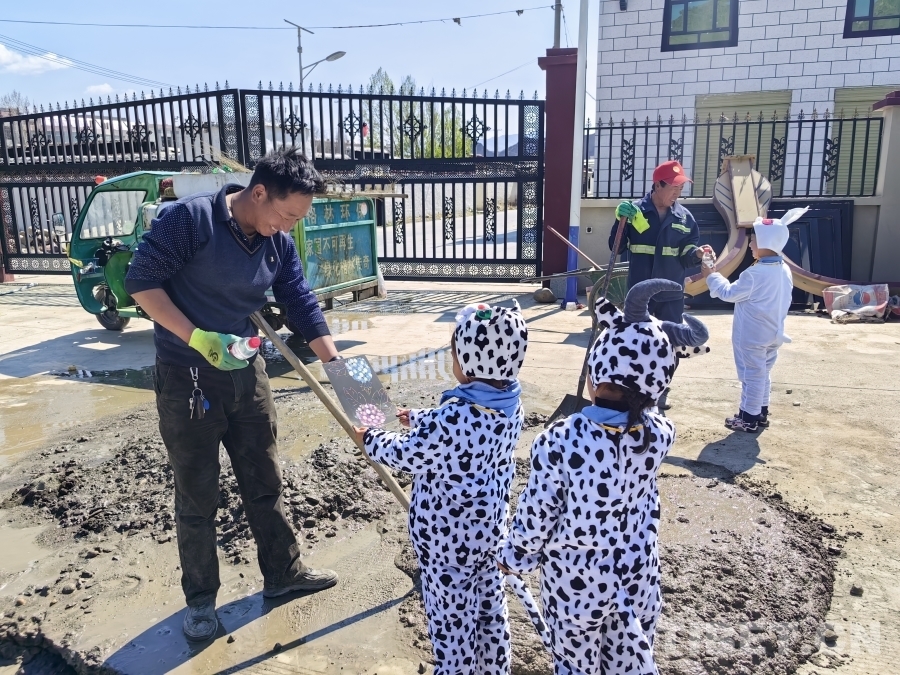 圖為拉孜縣幼兒園師生們攜手共建美好校園環(huán)境。