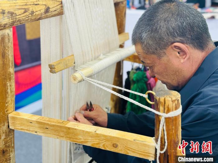 圖為國家鄉(xiāng)村工匠名師現場編織藏毯。中新網記者 孫睿 攝