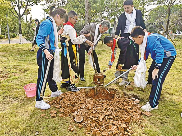 圖為“莞宜情·山海行”莞宜各族青年互訪交流活動(dòng)中,東莞、巴宜兩地青少年共同種下團(tuán)結(jié)之樹(shù)。