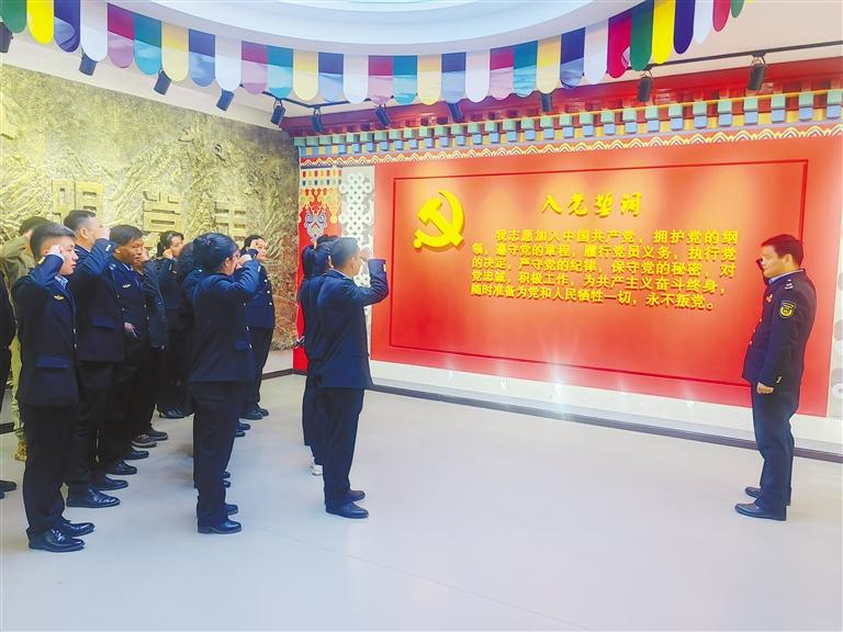 圖為全體黨員干部在重溫入黨誓詞。記者 旦增嘎瓦 攝
