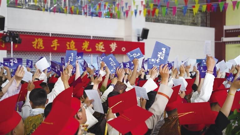 5月29日下午,拉薩市第四高級(jí)中學(xué)舉行2024屆高三年級(jí)成人禮暨畢業(yè)典禮。750余名學(xué)生身著盛裝,頭戴紅色成人禮帽,與老師、家長共赴這場華麗璀璨的青春盛宴。