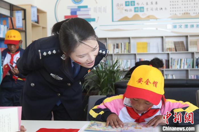 圖為民警和兒童體驗閱讀。里孜出入境邊防檢查站供圖