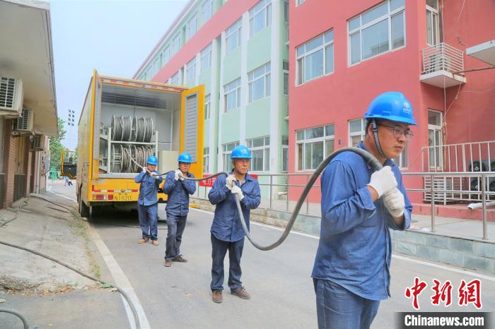 國網(wǎng)北京朝陽供電公司員工在北京西藏中學(xué)開展高考保電工作。翟磊 攝