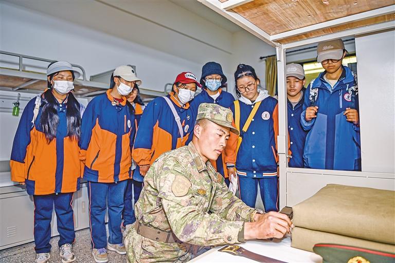 圖為八一建軍節(jié)前夕,西藏日喀則軍分區(qū)聯(lián)合日喀則市委宣傳部開展“強國復(fù)興有我”系列軍旅活動,組織青少年學(xué)生零距離感受軍營風采,切實提高國防意識,激發(fā)愛國主義情懷。這是學(xué)生們參觀官兵宿舍。通訊員 馮千恩 劉煜欽 記者 楊子彥 攝