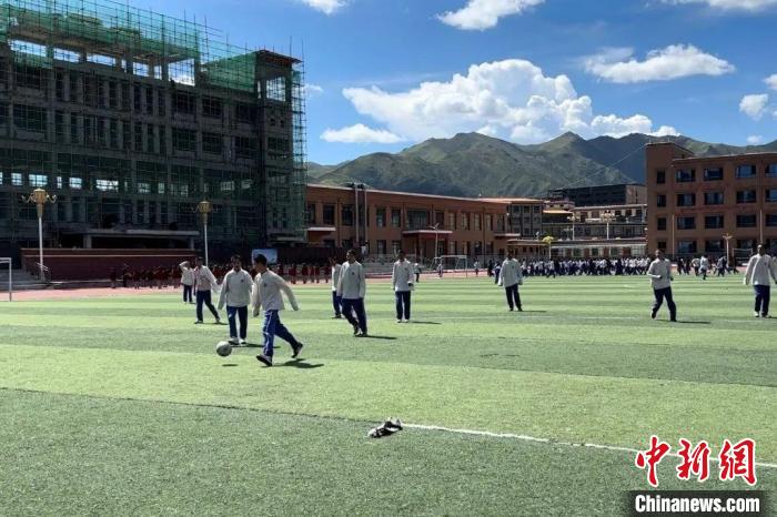 碌曲縣藏族中學(xué)的操場(chǎng)上,孩子們正在踢足球。臧赫 攝
