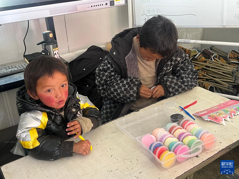 孩子們?cè)凇皽嘏∥荨斌w驗(yàn)彩泥課程(1月21日攝)。新華社發(fā) 仁青永曾 攝