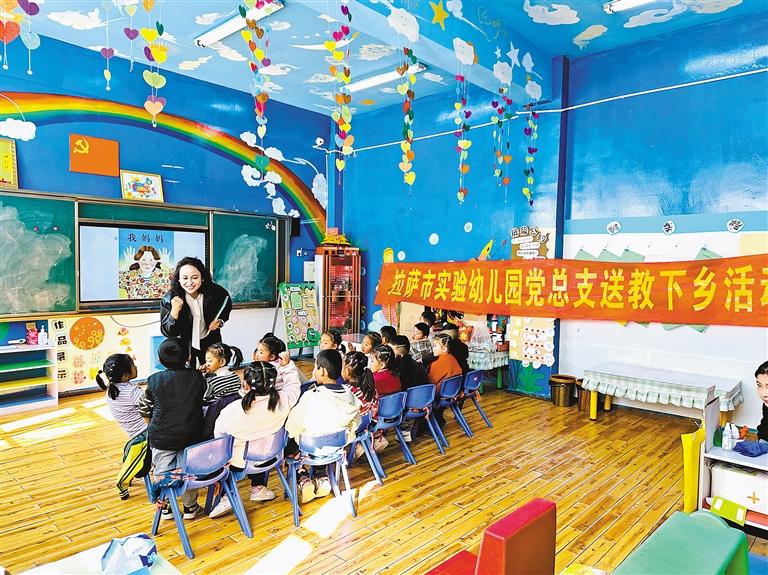 圖為拉薩市實(shí)驗(yàn)幼兒園黨員教師深入曲水縣南木鄉(xiāng)幼兒園開展送教活動(dòng)。記者 央金 攝