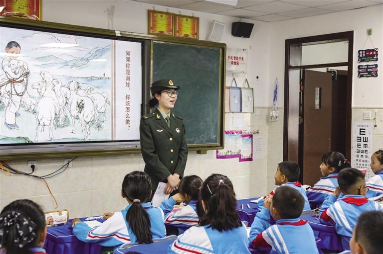 圖為官兵給學(xué)生講授國防知識。 文/圖 通訊員 吳成淼 單渤 常欣 記者 王香香