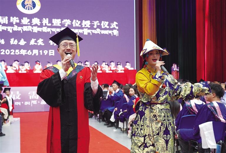 近日,西藏大學(xué)2025屆畢業(yè)典禮暨學(xué)位授予儀式在納金校區(qū)舉行。3000余名校內(nèi)外代表現(xiàn)場見證3469名畢業(yè)生的重要時(shí)刻,未能到場的師生校友通過網(wǎng)絡(luò)直播共享這一盛況。