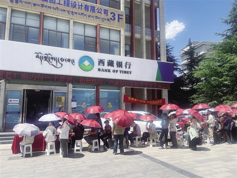 同時,在西藏銀行總行營業(yè)部門口,也有很多考生和家長排隊領取報紙,工作人員還為他們送上了礦泉水、雨傘等物品,考生和家長紛紛點贊。