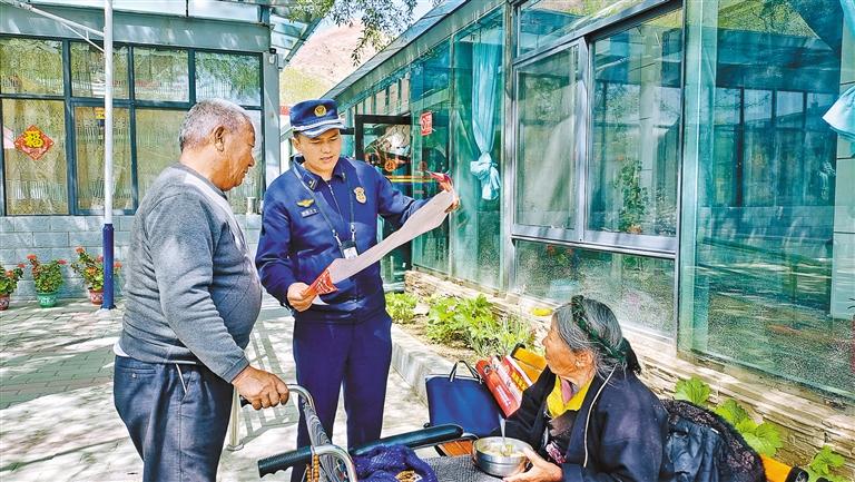 白朗縣消防救援大隊(duì)消防宣傳員深入轄區(qū)特困人員集中供養(yǎng)服務(wù)中心講解消防安全常識(shí)。通訊員 旦巴亞培 邊巴央宗 攝