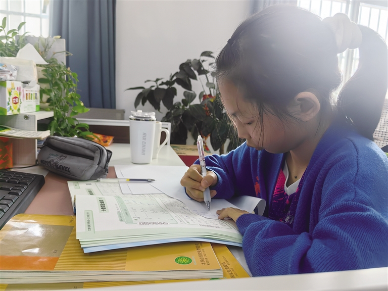 開(kāi)學(xué)在即,學(xué)生加班加點(diǎn)寫(xiě)作業(yè)。