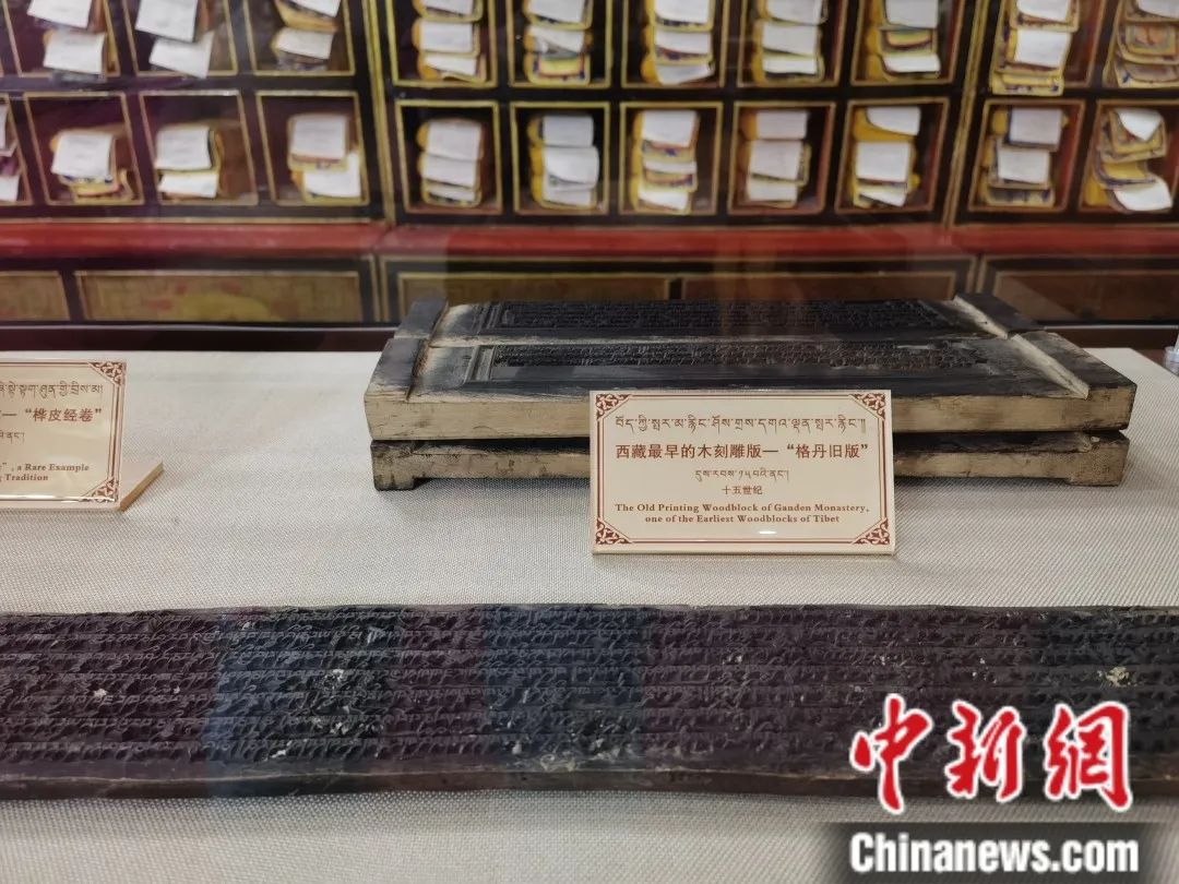 圖為西藏大學圖書館藏文古籍研究所收藏西藏最早的木刻雕版。中新社記者 趙延 攝