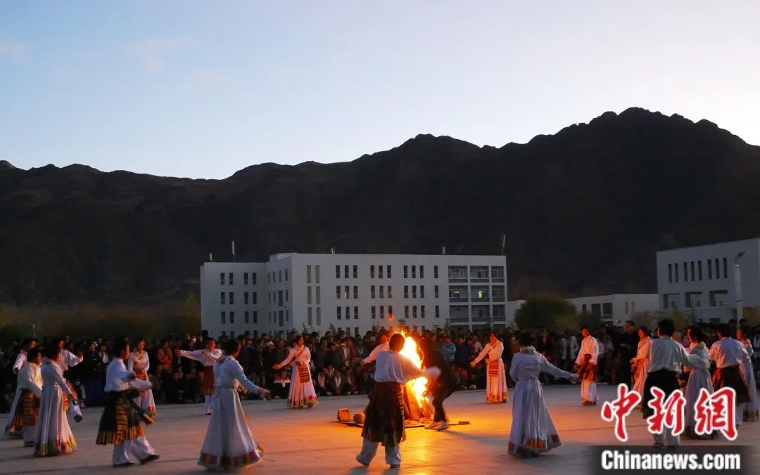 圖為學校舉行“增強民族團結、共建和諧校園”主題篝火晚會。西藏大學供圖