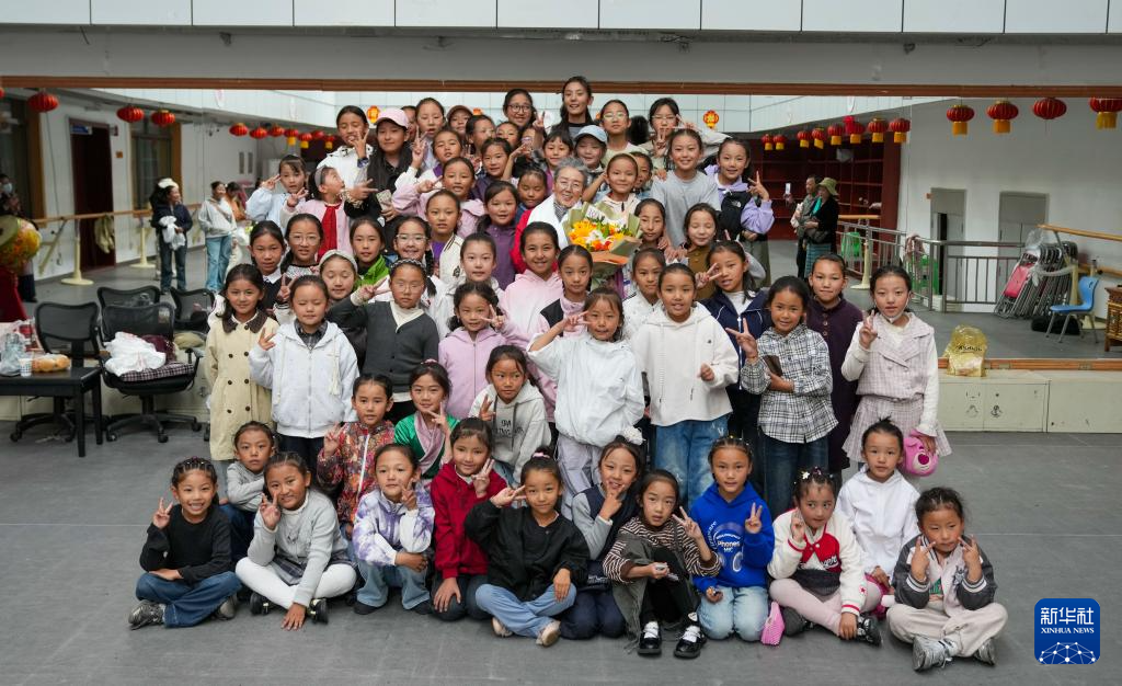 9月14日,在西藏自治區(qū)群藝館,巴桑老師和學(xué)習(xí)藏戲的孩子們合影留念。新華社記者 晉美多吉 攝