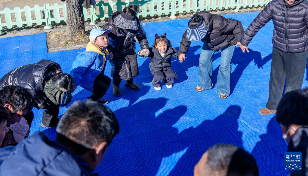 1月22日,在拉薩市全民健身體彩公園,殘障兒童在家長(zhǎng)陪同下參加“陽(yáng)光殘障兒童公益興趣班”體適能訓(xùn)練課程。新華社記者 丁增尼達(dá) 攝