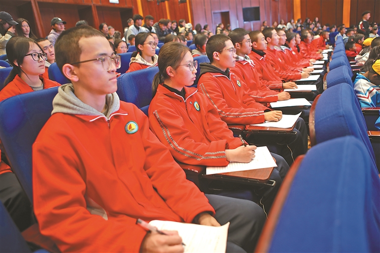 學(xué)生們?cè)谡J(rèn)真聆聽(tīng)講座。記者 格桑倫珠 攝
