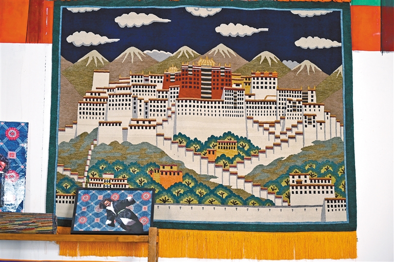 圖為喀瓦堅藏毯廠生產(chǎn)的以“布達(dá)拉宮”為題材的藏毯。 記者 趙越 攝