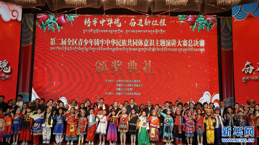 這是第二屆西藏青少年鑄牢中華民族共同體意識主題演講大賽總決賽的頒獎(jiǎng)典禮(5月25日攝)。新華社記者 劉洲鵬 攝