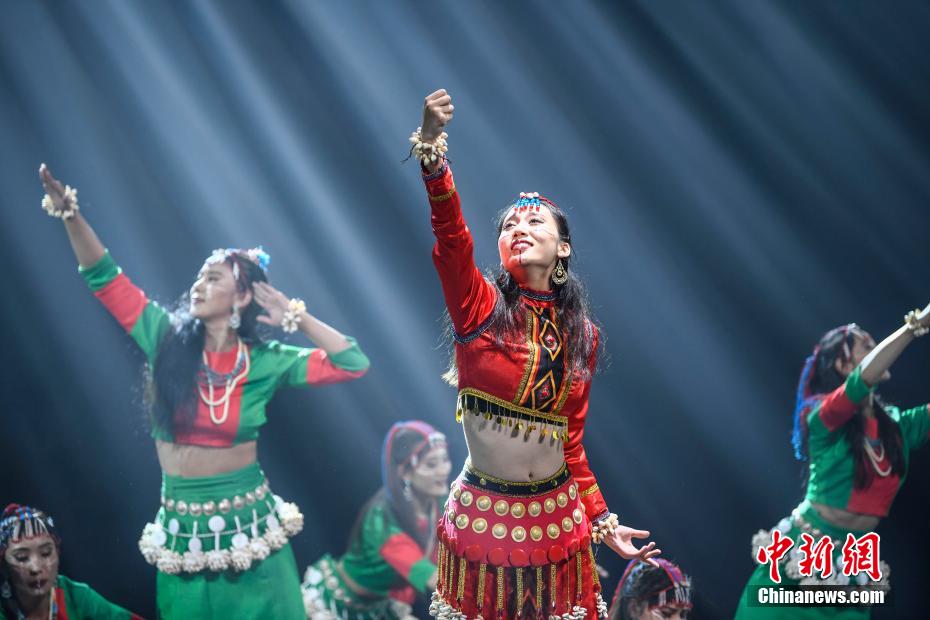 圖為西藏阿里地區(qū)象雄藝術(shù)團(tuán)演員帶來舞蹈《古韻果爾孜》表演。