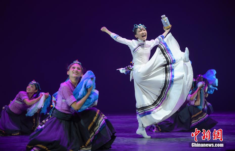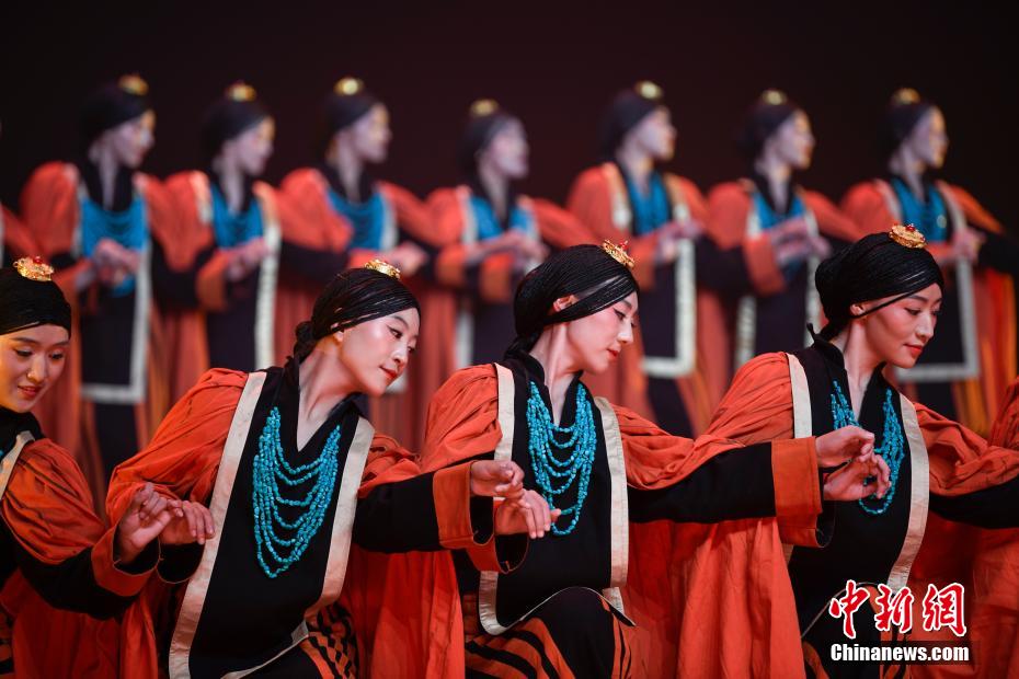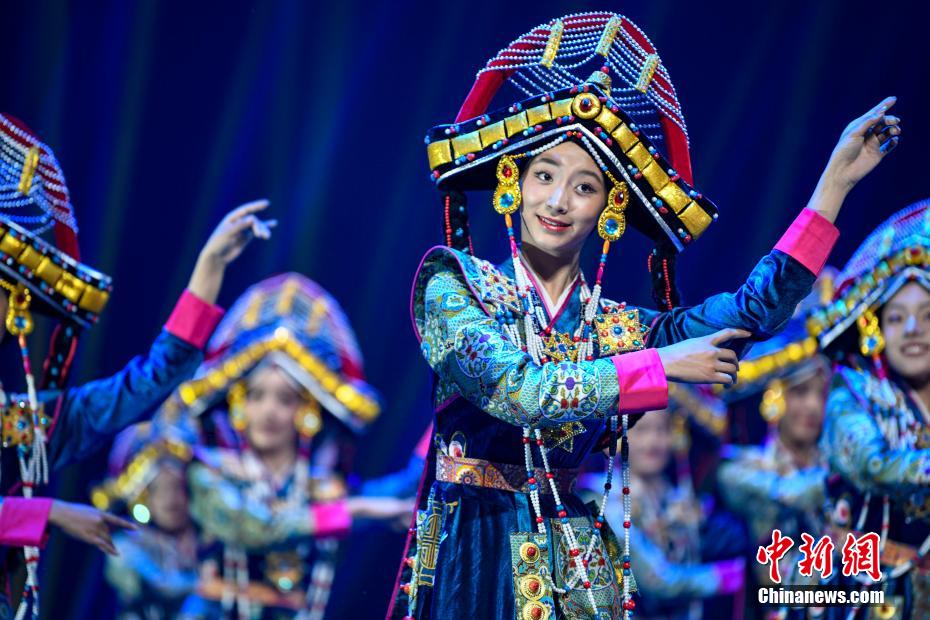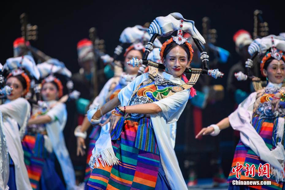 圖為西藏日喀則市民族藝術(shù)團(tuán)演員帶來舞蹈《來自喜馬拉雅的祝福扎西德勒》表演。