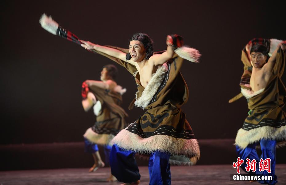 圖為西藏昌都市康巴文化藝術(shù)團(tuán)演員帶來舞蹈《長毛嶺·守鹿人》表演。