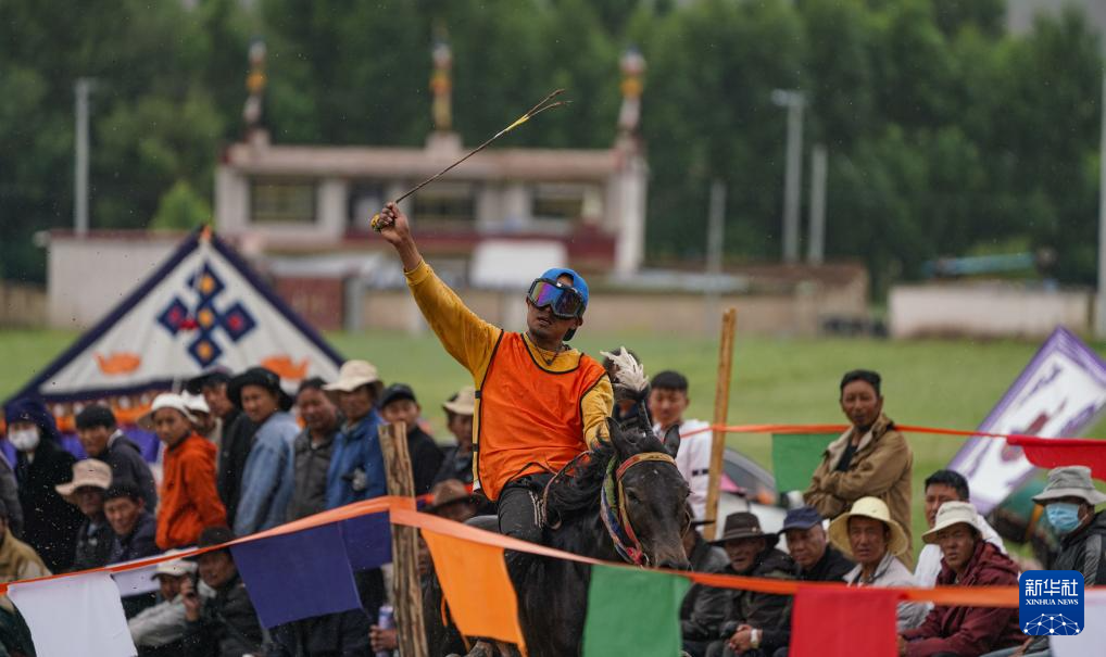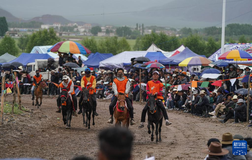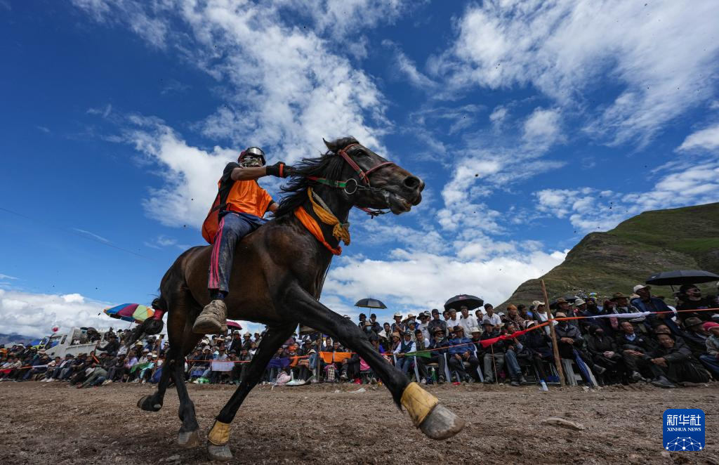 7月23日,選手在拉薩甘丹曲果鎮(zhèn)賽馬場(chǎng)參加走馬比賽新華社記者 晉美多吉 攝