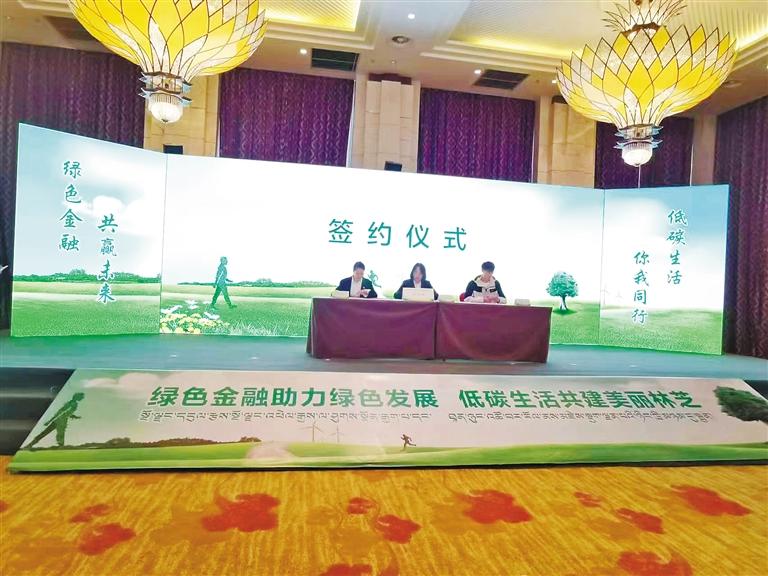 在中國(guó)建設(shè)銀行西藏自治區(qū)分行舉辦“綠色金融助力綠色發(fā)展 低碳生活共建美麗林芝”活動(dòng)上的簽約儀式。