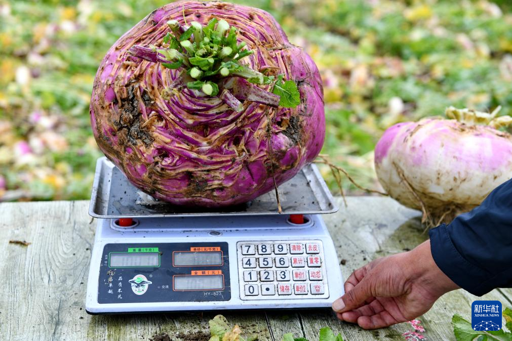 8月14日,拉薩市曲水縣才納鄉(xiāng)收獲10.01公斤重蕪菁?jí)K根。新華社記者 張汝鋒 攝