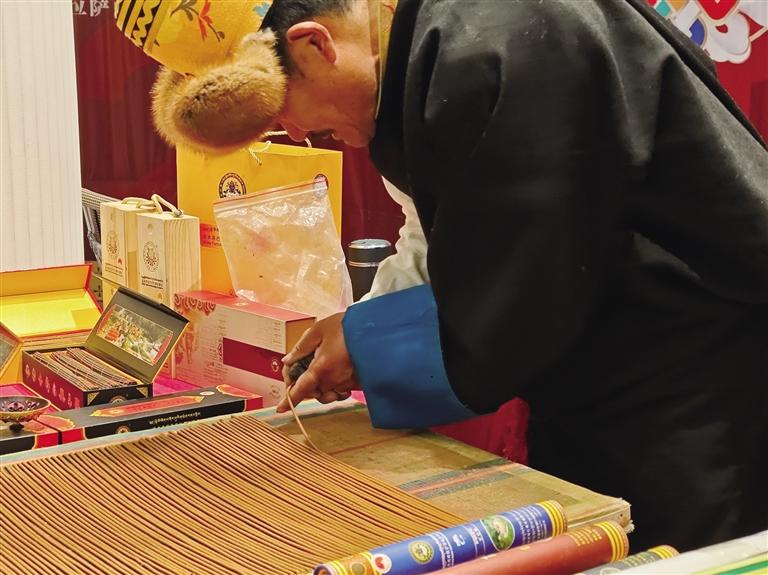 展銷活動(dòng)現(xiàn)場(chǎng),一股淡雅香氣彌漫開來(lái),藏香展位上,線香靜靜燃燒。拉薩市級(jí)非物質(zhì)文化遺產(chǎn)代表性傳承人加措正在制作藏香,吸引不少人駐足觀看。市民鄭先生說(shuō):“以前只見過(guò)藏香成品,第一次看制作過(guò)程,很驚喜。春節(jié)申遺成功后,非遺受關(guān)注更多,希望西藏非遺好物能被更多人了解!”