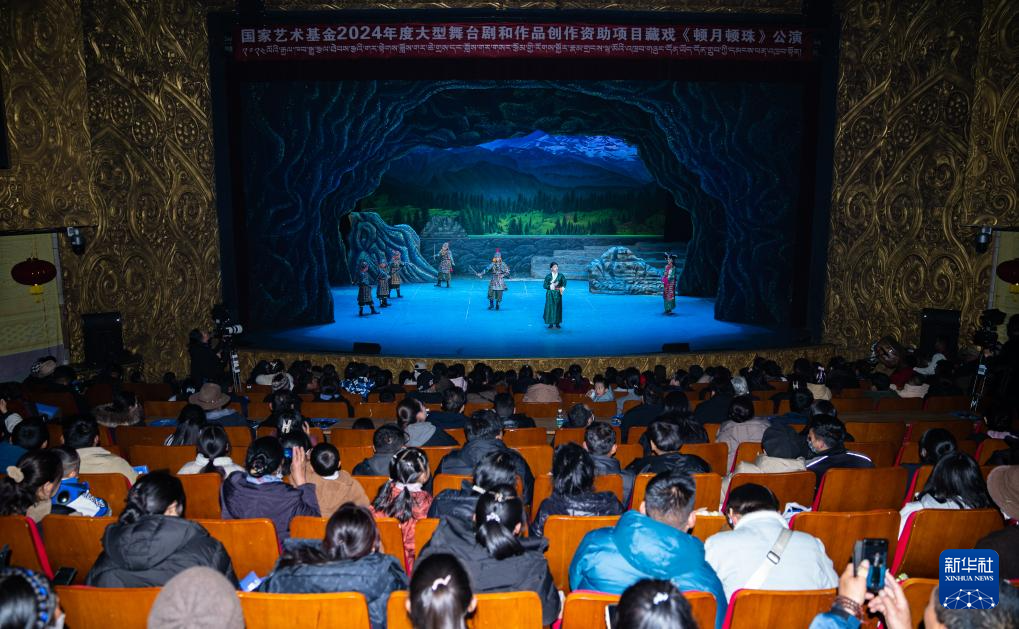 西藏首部少兒舞臺(tái)劇藏戲《頓月頓珠》演出現(xiàn)場(chǎng)(2月11日攝)。新華社記者 丁增尼達(dá) 攝?