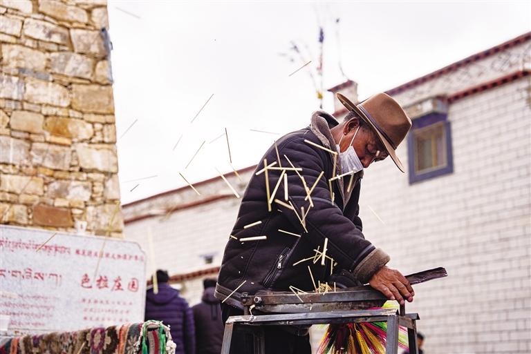 “一個人一天可以制作300到400捆‘羅薩梅朵’,批發(fā)價2元一捆,零售價5元一捆。每年賣完‘羅薩梅朵’后,我們就開始置辦年貨了?!?1歲的央金家共有5口人,“羅薩梅朵”是她家的主要收入來源。每天早晨7點,她家的燈光就已亮起。央金留在家中制作“羅薩梅朵”,丈夫和女兒則前往拉薩市區(qū)售賣。