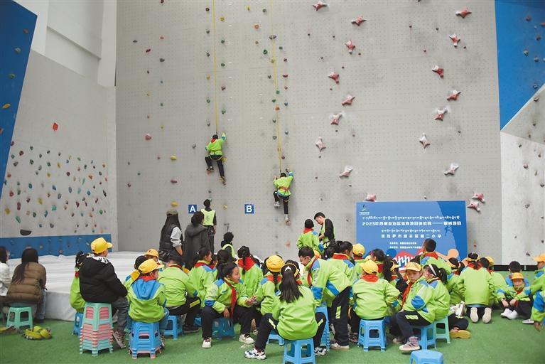 為促進(jìn)學(xué)生全面發(fā)展,近日,由自治區(qū)體育局主辦的“攀巖項(xiàng)目進(jìn)校園”活動(dòng)在拉薩市城關(guān)區(qū)第二小學(xué)舉行?;顒?dòng)中,專(zhuān)業(yè)教練講解了攀巖運(yùn)動(dòng)的基本知識(shí)、技巧以及安全注意事項(xiàng),學(xué)生們?cè)谧龊帽Wo(hù)措施后,分組攀上模擬巖壁,體驗(yàn)攀登帶來(lái)的樂(lè)趣。