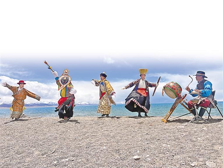 納木錯(cuò)湖畔的藏戲表演。記者 劉斯宇 彭慶 劉琳琳 攝