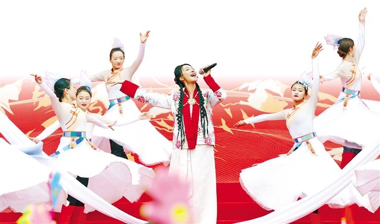 演出中,不同民族的文藝志愿者齊聚一堂。漢族、藏族、蒙古族、彝族等各民族藝術家攜手合作,用藝術搭建起溝通的橋梁。他們用歌聲、舞蹈、相聲、朗誦等多種藝術形式,深情歌頌新時代黨的治藏方略,生動展現(xiàn)西藏自治區(qū)成立60年來的滄桑巨變,傳遞民族團結的深厚情誼,讓現(xiàn)場觀眾沉浸在藝術的氛圍中。