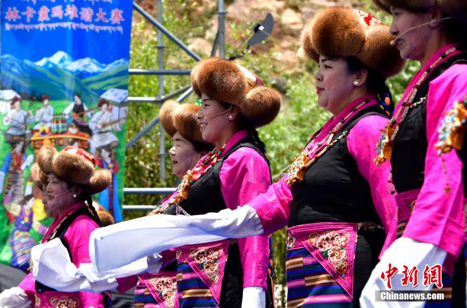 6月28日,拉薩首屆林卡囊瑪堆諧大賽在達(dá)孜區(qū)舉辦?,F(xiàn)場(chǎng),經(jīng)過(guò)前期海選入圍的19支隊(duì)伍依次上臺(tái)競(jìng)技。囊瑪和堆諧,合稱囊瑪堆諧,是西藏民間歌舞發(fā)展到較高層次、集歌舞樂(lè)為一體的珍貴傳統(tǒng)文化藝術(shù)遺產(chǎn),深受當(dāng)?shù)孛癖姷南矏?ài)與追捧。圖為首屆林卡囊瑪堆諧大賽比賽現(xiàn)場(chǎng)。